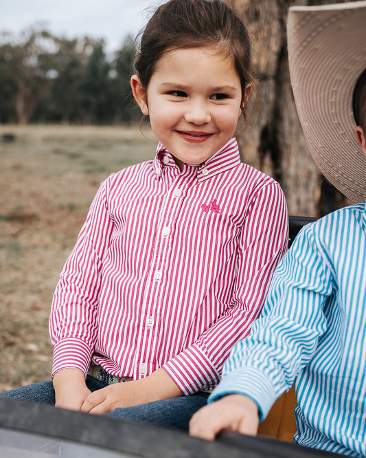 CampdraftKids Long Sleeve Shirt - Hot Pink Stripe