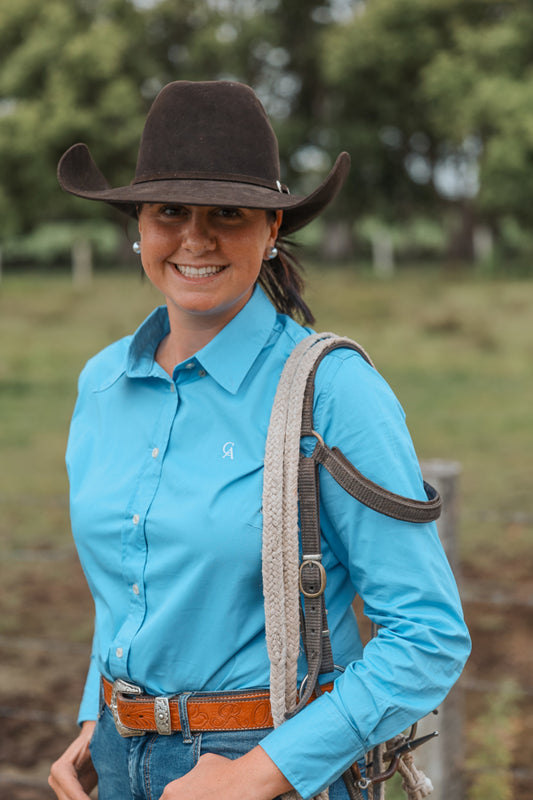 CLEARANCE - Ladies NEW Classic Fit Long Sleeve Shirt - Cornflower Blue