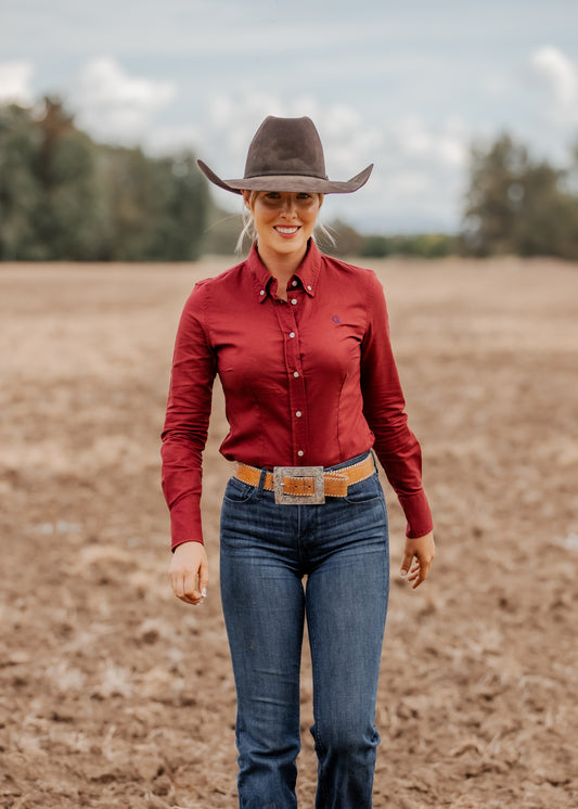 Ladies Slim Fit Long Sleeve Shirt - Burgundy