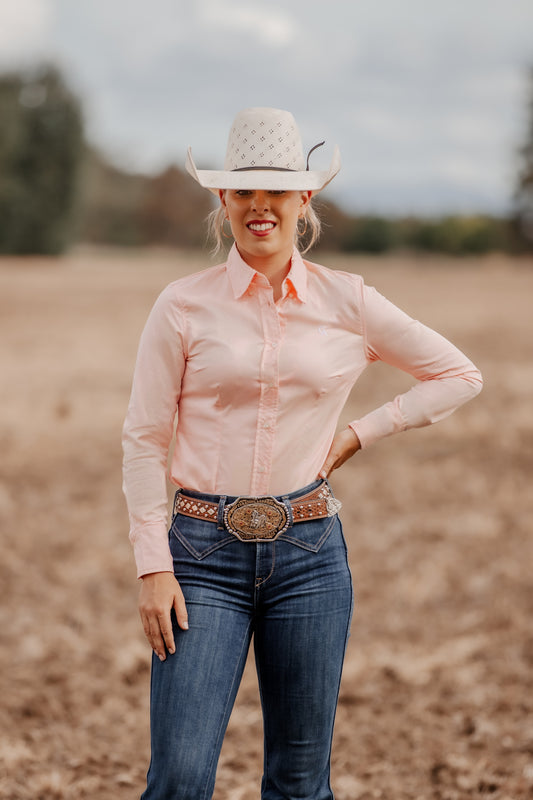 Ladies Slim Fit Long Sleeve Shirt - Peach