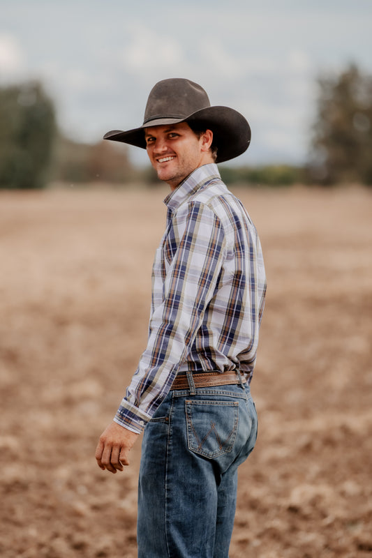 Men's Long Sleeve Shirt - Navy/Olive Plaid