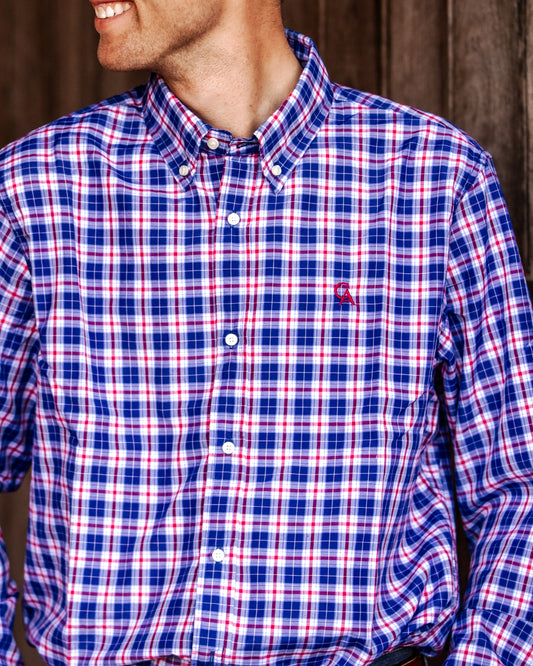 Men's Long Sleeve Shirt - Red/Navy Plaid
