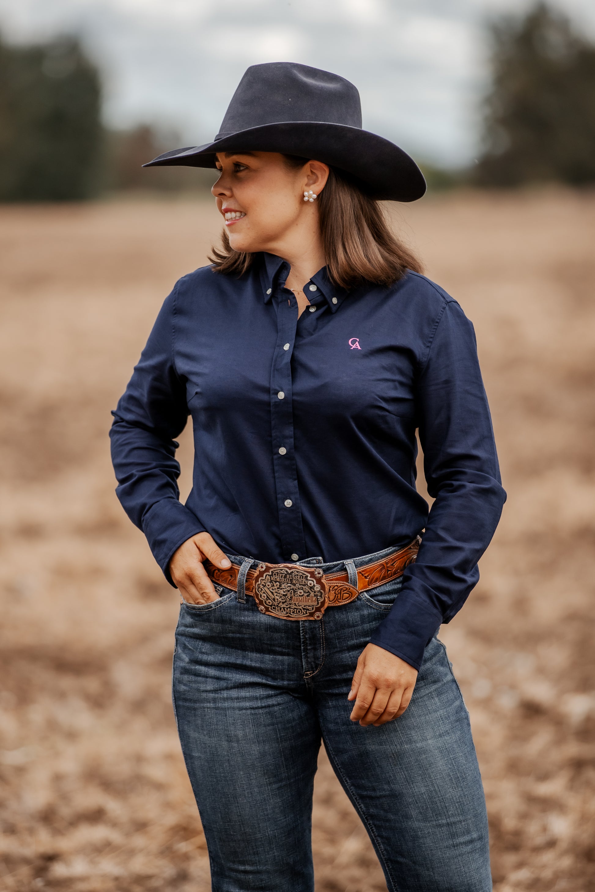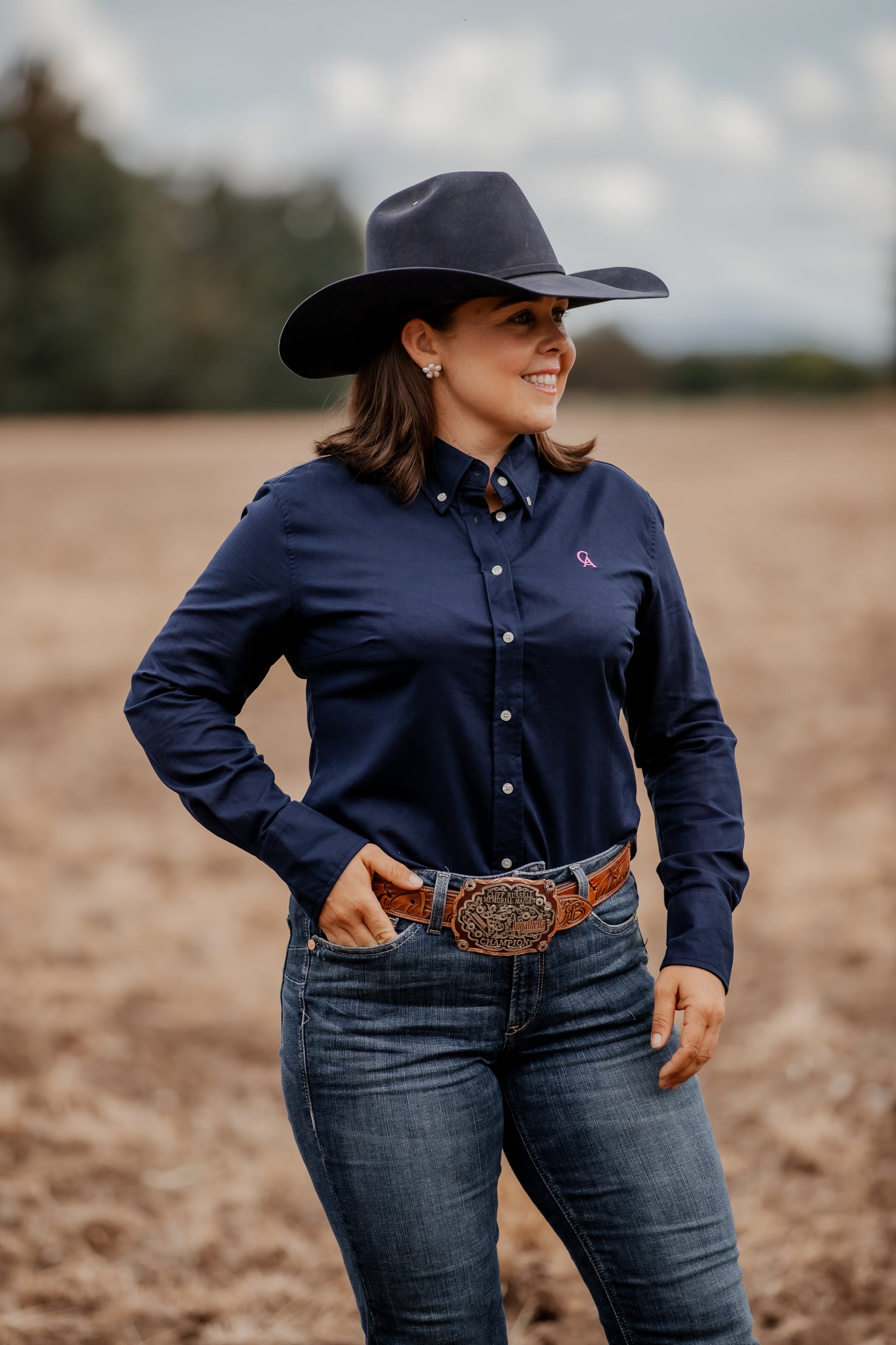 Ladies NEW Classic Fit Long Sleeve Shirt - Navy