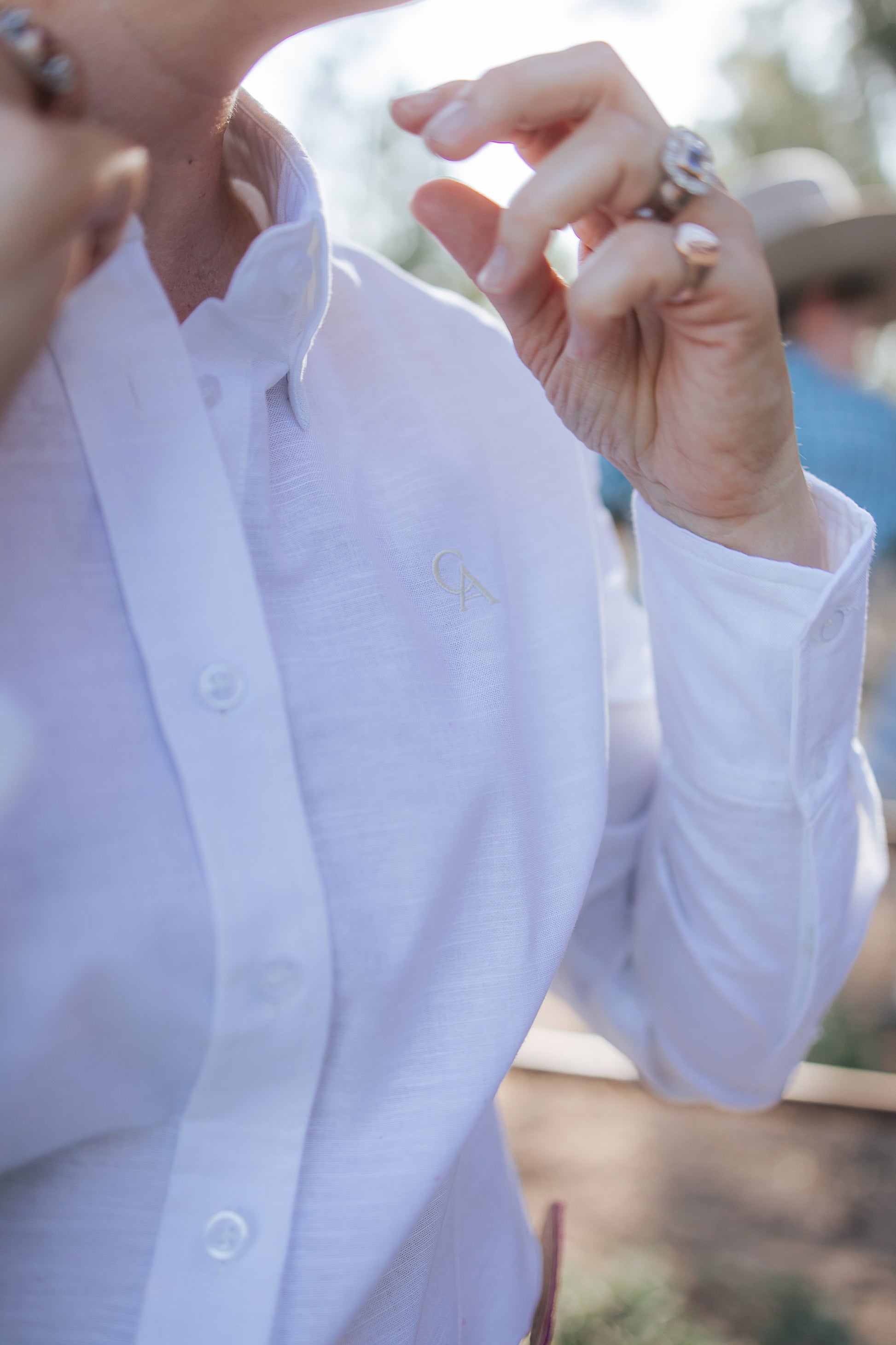 Indulge in both style and functionality with our Ladies Classic Fit Long Sleeve Shirt in White. Carefully crafted from the most beautiful cotton/linen blend, our Classic Fit offers a more relaxed silhouette while still maintaining that feminine feel.