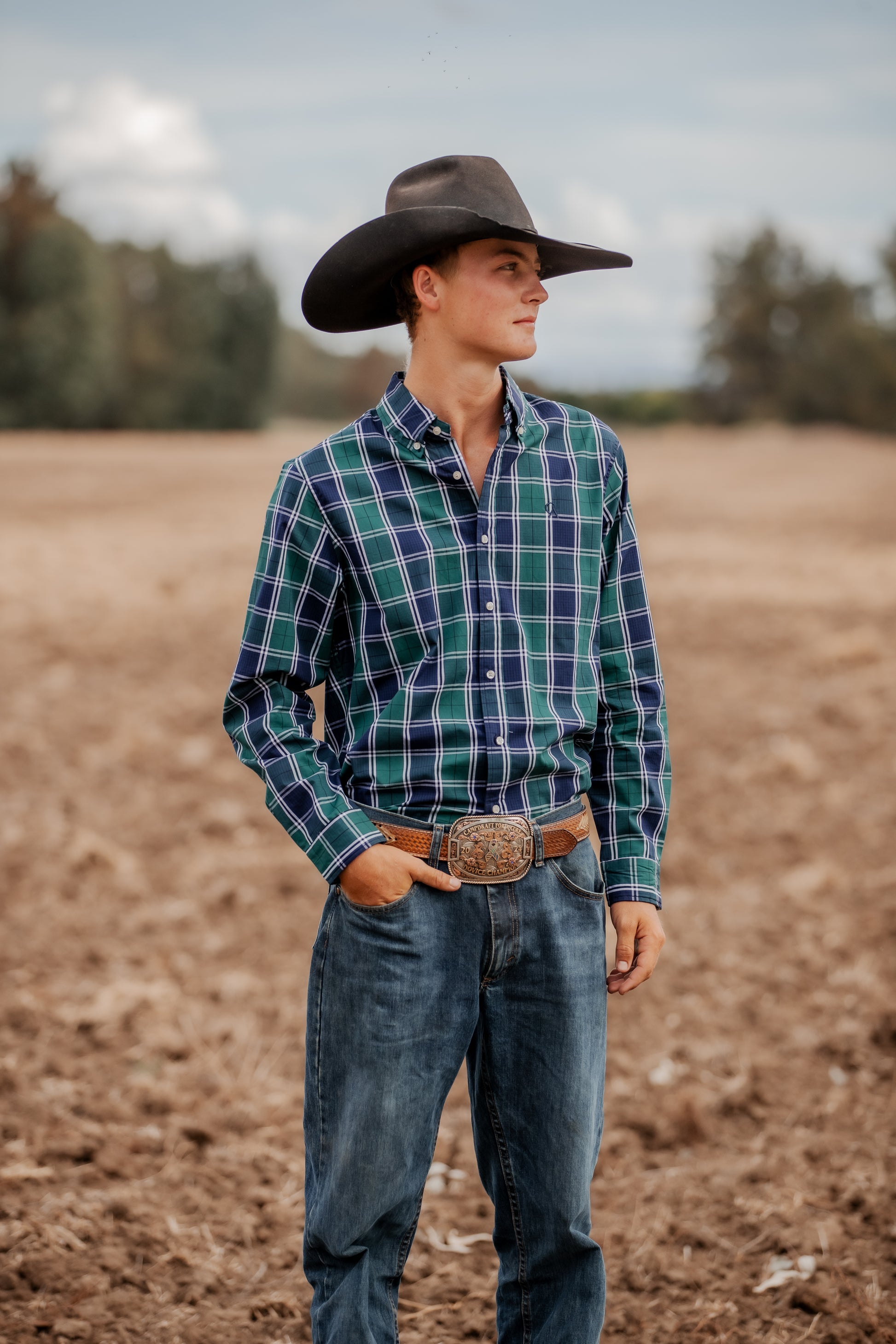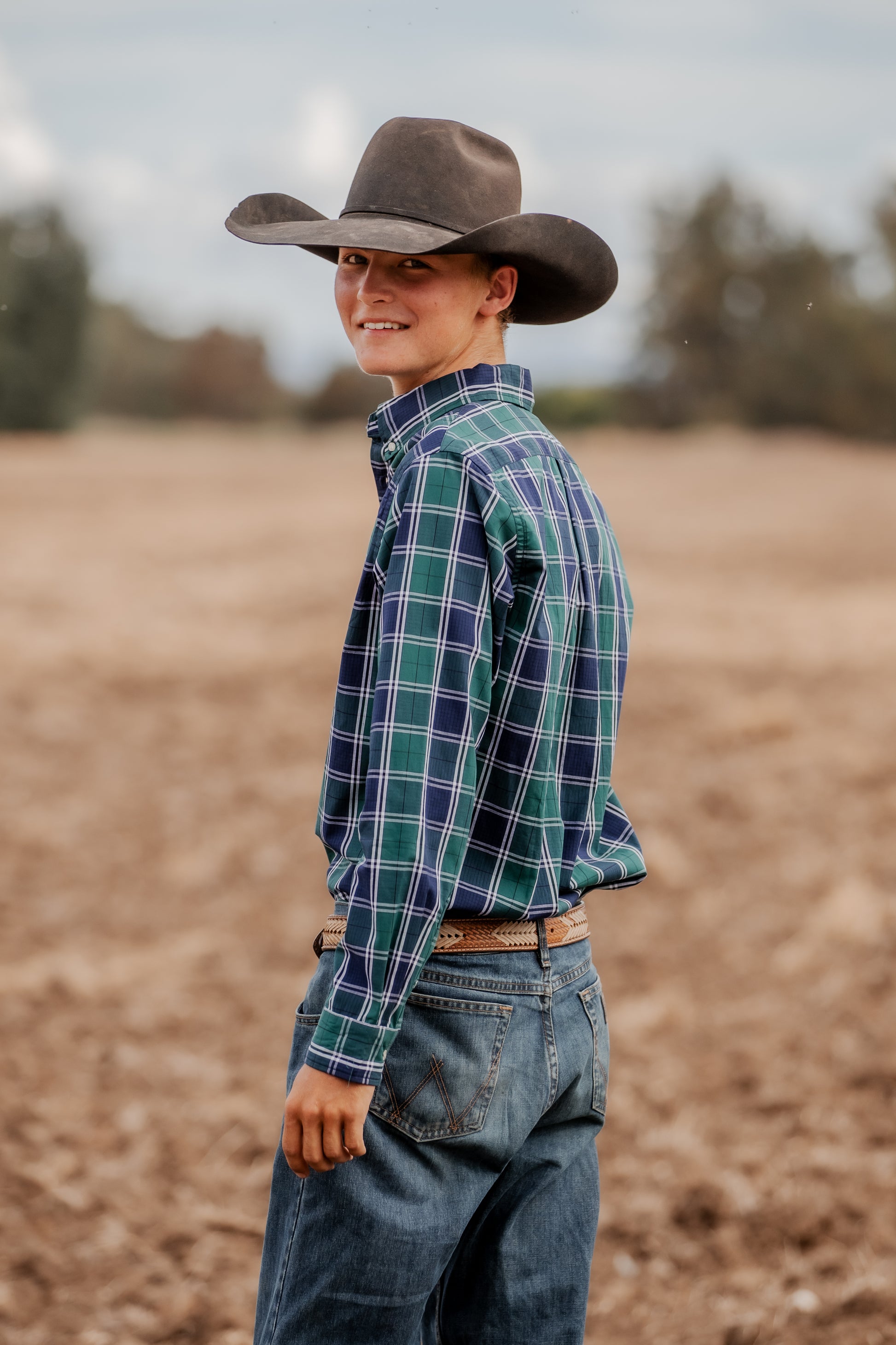 Men's Long Sleeve Shirt - Green/Navy/White Plaid