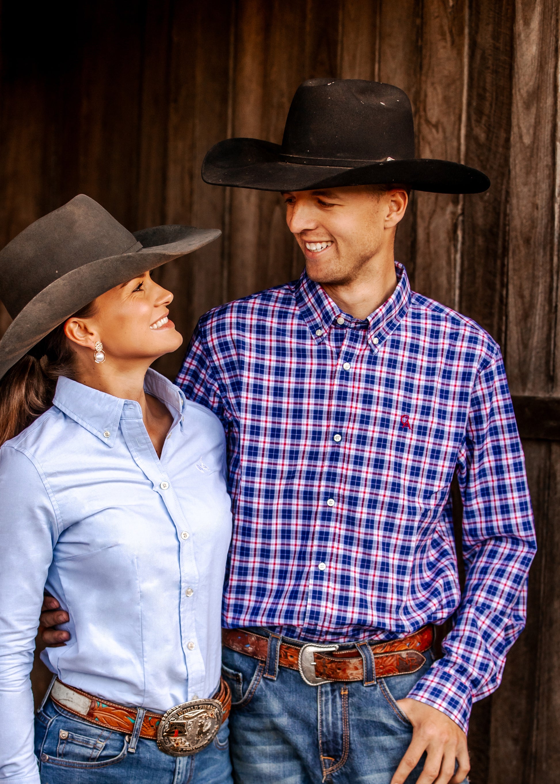 Men's Long Sleeve Shirt - Red/Navy Plaid